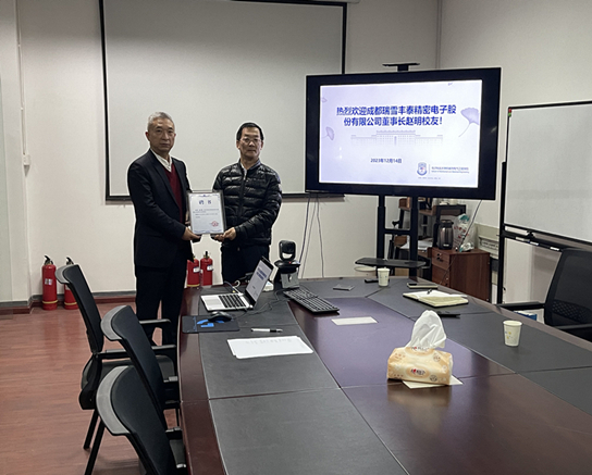 2023年12月14日,成都瑞雪丰泰精密电子股份有限公司董事长,“全国五一劳动奖章”、四川省“优秀共产党员”、成都市安全生产专项“五一劳动奖章”获得者,成都市党代表、郫都区党代表、郫都区“履职优秀”人大代表,四川省工商联执委、四川省科技装备商会副会长、郫都区工商联副主席、郫都区智能制造协会会长赵明院友到访机电与控制工程国家级实验教学示范中心及工程训练中心。