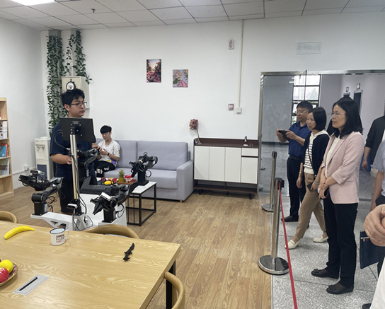 许院长一行人分别参观了具身智能机器人学生科创联合实验室,制造工程训练部、电工电气实训部、制造过程实验室、机构创新设计实验、机器人挑战实验室,并对每个实验室教学运行、课程建设、实训模块与项目开发等方面与实验室负责老师进行了交流。