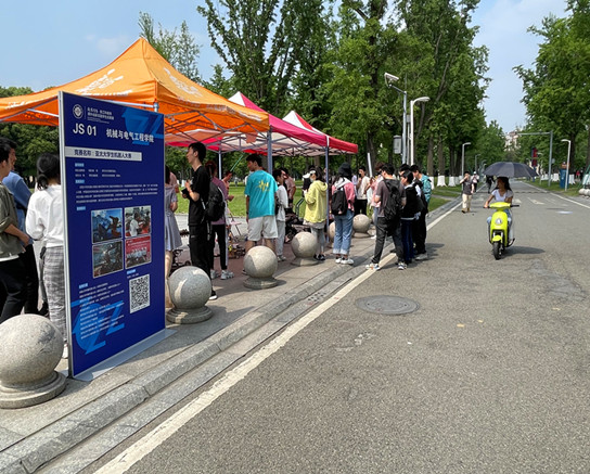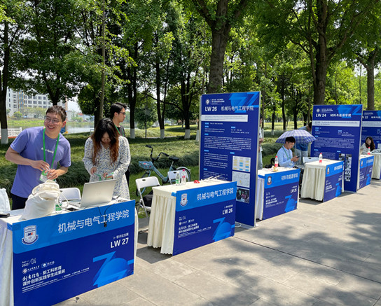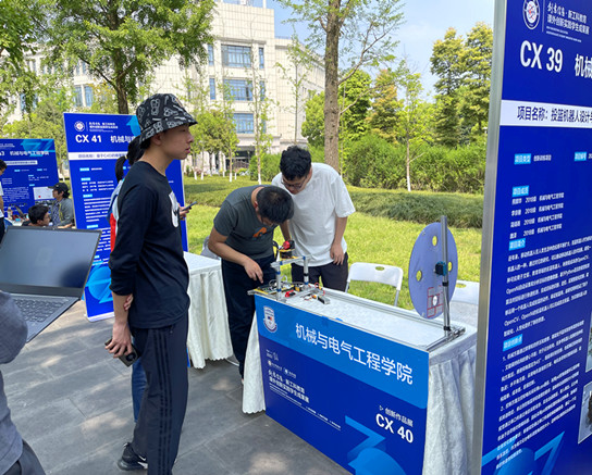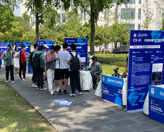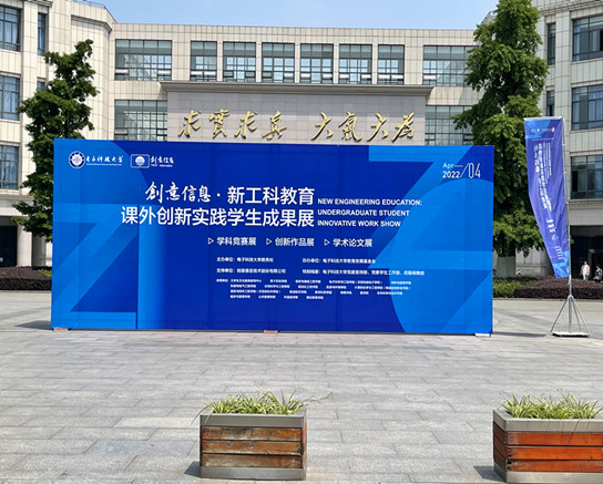4月21日,学校首届“创意信息·新工科教育课外创新实践学生成果展”在清水河校区银杏大道开展,65篇学术论文、128个课外实践创新作品、34项重点学科竞赛集体亮相,与全校师生近距离接触。校长曾勇,校领导杨晓波、申小蓉分别到展会现场与学生交流。