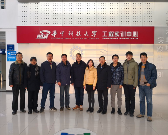 12月13日上午,调研小组辗转到达武汉,前往华中科技大学工程实训中心,中心副主任吴志超进行了接待。华中科大工训中心承担了全校学生机械加工与电气相关课程的实训任务,工种配备十分齐全,各学院学生可以根据自身专业需求选择需要学习的工种。同时,在中心建设方面,积极探索最新科技成果与教学的结合,向智能制造方向进行拓展,由学校统一规划部署,与华中数控、华中激光等行业龙头企业深度融合,预计在2018年4月,建成一条智能制造生产线,使得学科建设与科技发展紧密结合,让学生能够对前沿科技有更深入的了解。