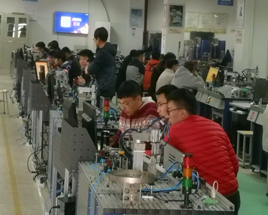 经过半年的准备,2月25日,新的电工电气实训技术实训正式开课,由电安全与电工基础、电气控制与应用、先进自动化与PLC、工业机器人设计与仿真四个模块组成。除此之外,本实验室 还开设有《现代一体化电子设计实验》,《基于Arduino的电子创客制作》,《基于PSOC单片机的电子设计实验》,《先进运动控制系统实验》,《先进过程自动化控制系统实验》,《成电英才创课》等跨专业实验课,为学生提高自己创新设计能力提供了场地及培训,有力的支持了学校的开放创新、创业政策。